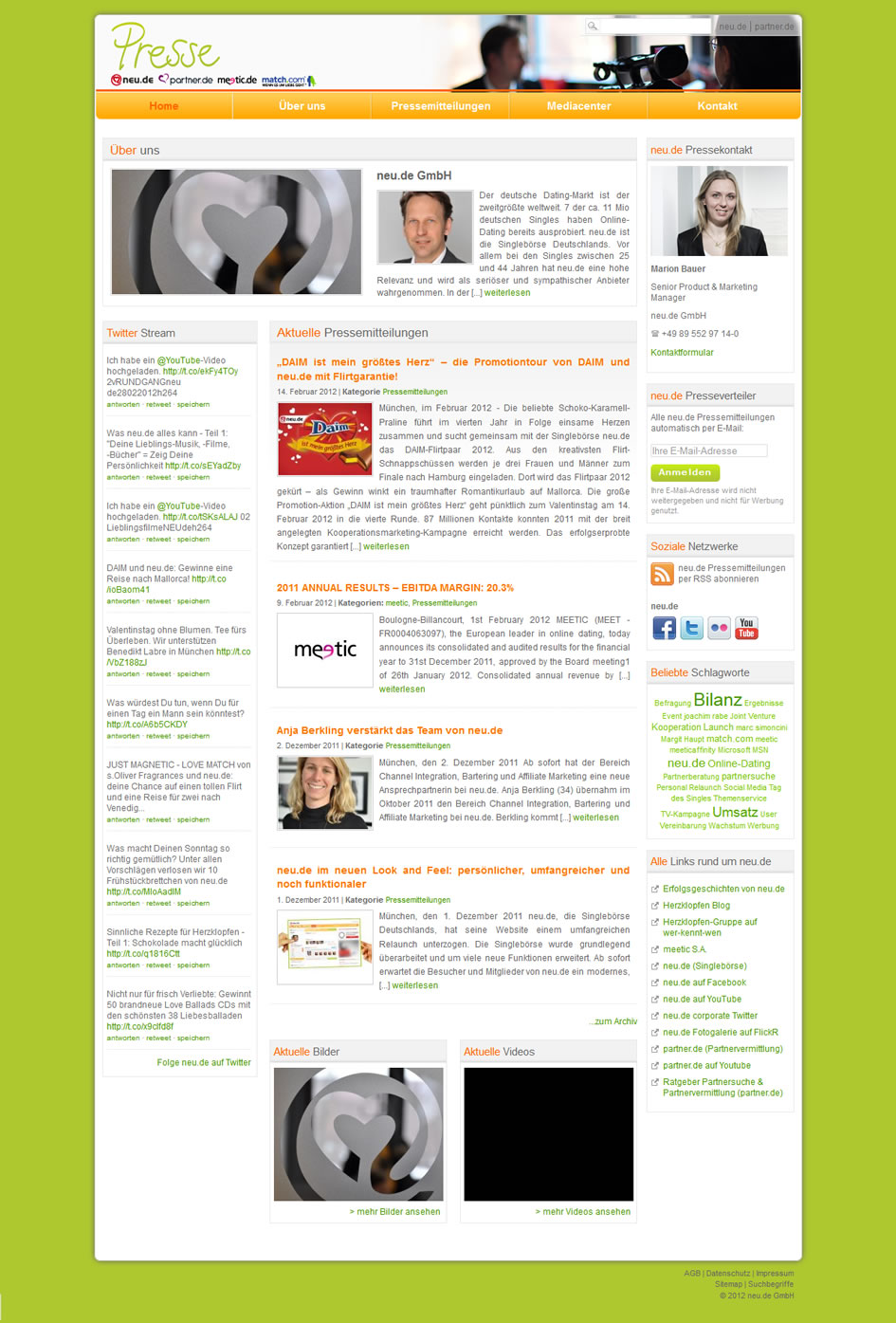 Die neu.de GmbH gehört zur französischen meetic-Gruppe, dem europäischen Marktführer im Bereich der Online-Partnersuche. Seit Februar 2010 betreibt die neu.de GmbH auch die deutschsprachigen Seiten von match.com.